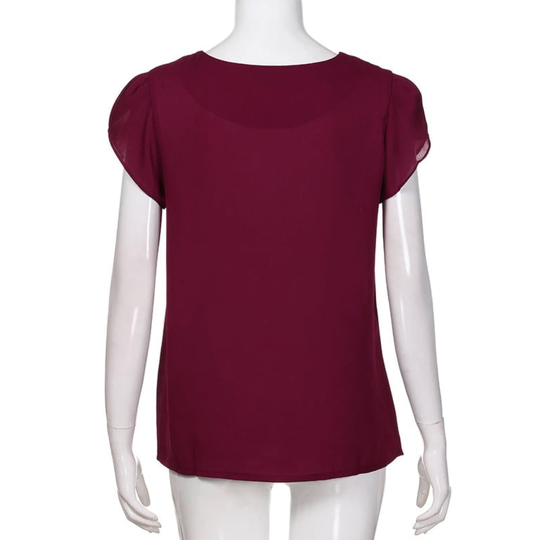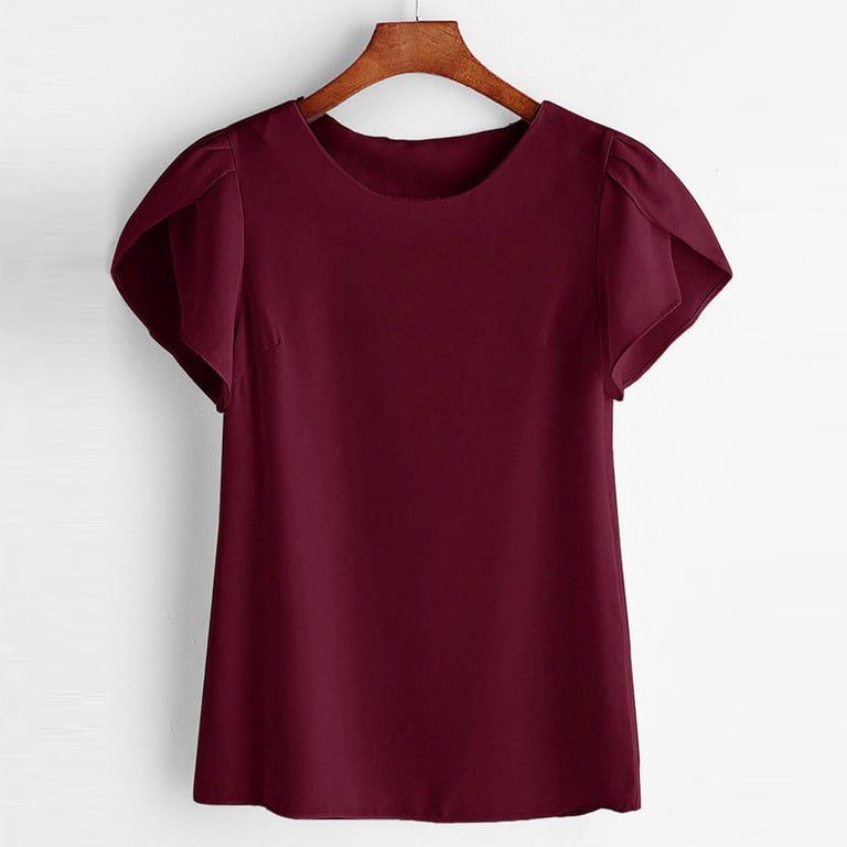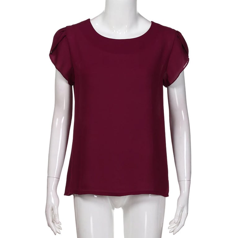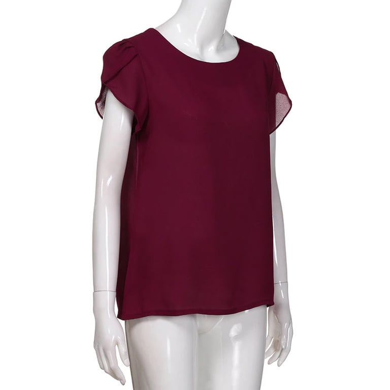 Blusa de mujer con escote redondo. La blusa tiene mangas cortas con fruncido. Corte holgado. Material ligero y transpirable. Disponible en varios colores.