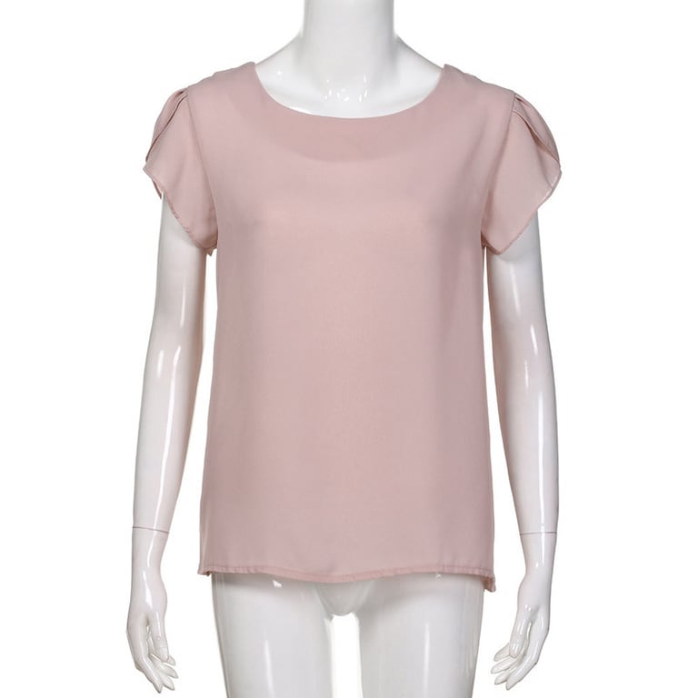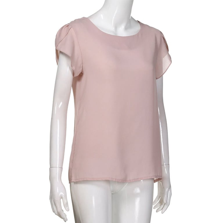Blusa de mujer con escote redondo. La blusa tiene mangas cortas con fruncido. Corte holgado. Material ligero y transpirable. Disponible en varios colores.