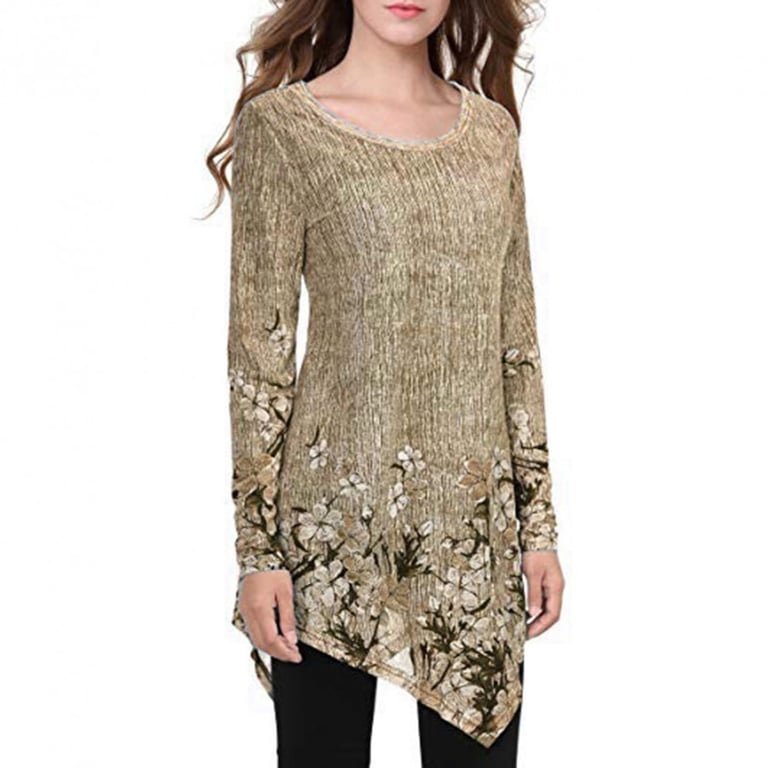 Blusa de mujer con mangas largas y escote redondo. Corte asimétrico suelto. Tallas grandes. Disponible en varias opciones de color.