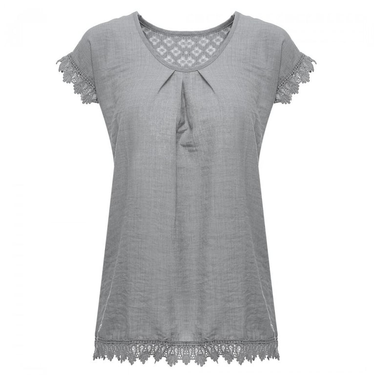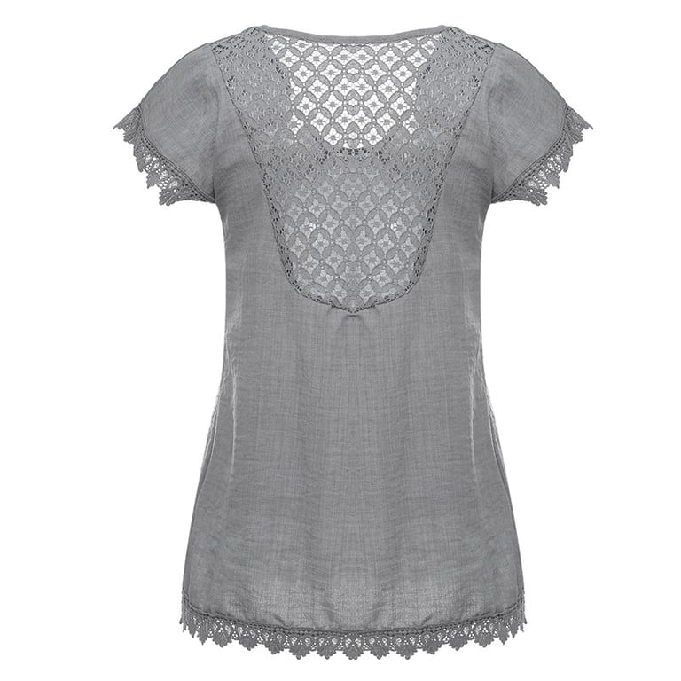 Blusa de mujer con mangas cortas de encaje. Corte suelto con escote en la espalda. Disponible en varias opciones de color.