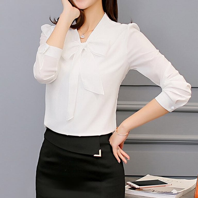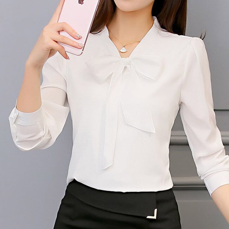 Blusa elegante para mujer con lazo en el cuello. Corte suelto con mangas largas. Varias opciones de color.