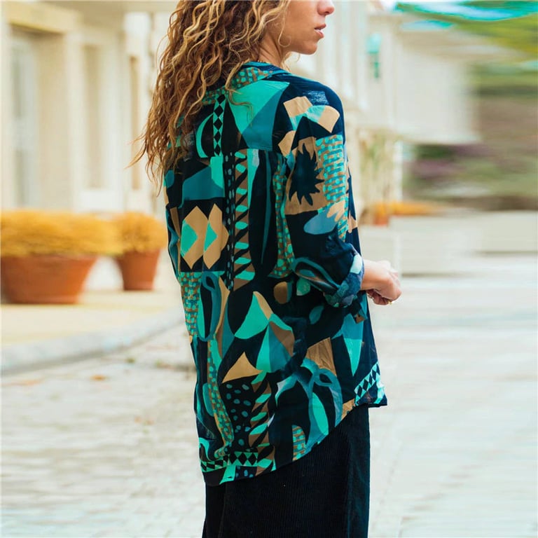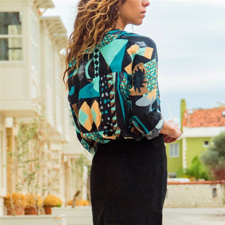 La blusa de mujer con un patrón inusual es la compañera ideal para reuniones sociales, citas o para el trabajo.