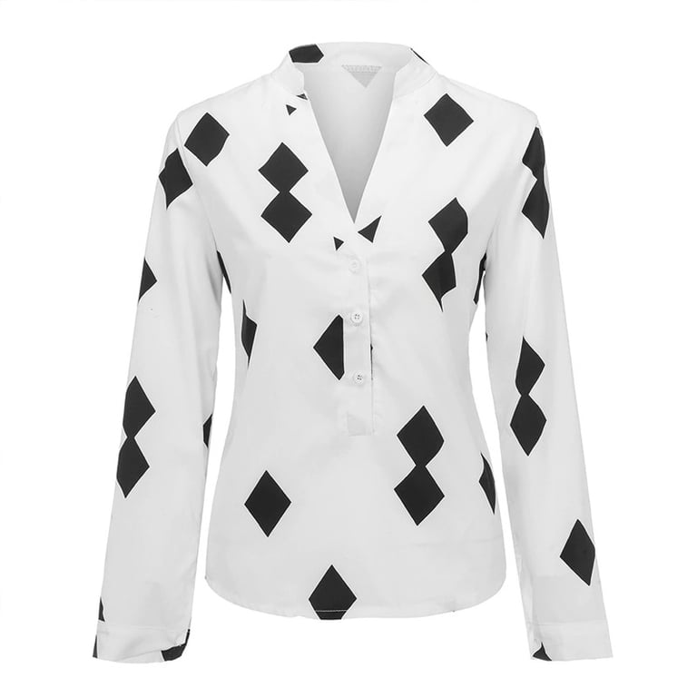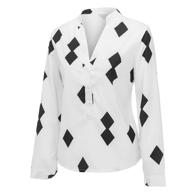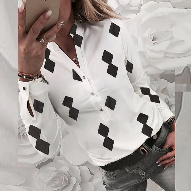 Blusa estilosa con un atractivo estampado de cuadros. El patrón simétrico le dará a tu apariencia un toque de elegancia. Adecuada para un traje de trabajo o para eventos sociales.