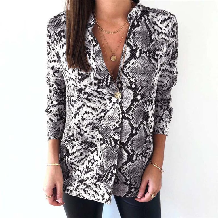 Blusa estilosa con un patrón de serpiente, ¡que es un éxito esta temporada! Esta prenda definitivamente no debería faltar en tu armario. ¡Estarás estilosa y un aspecto perfecto también asegurará un mejor estado de ánimo!