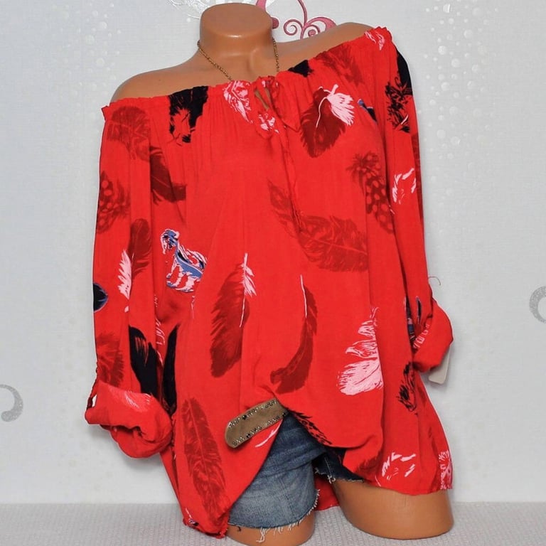 Blusa elegante con estampado de plumas ligeras en colores atractivos.