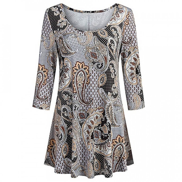 Blusa de túnica para mujer con mangas largas y escote redondo. Corte más largo y suelto. Estampado colorido. Disponible en varias opciones.