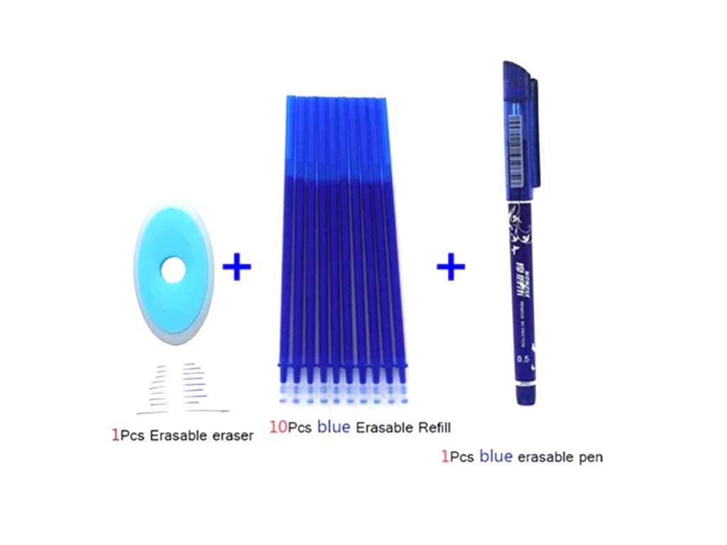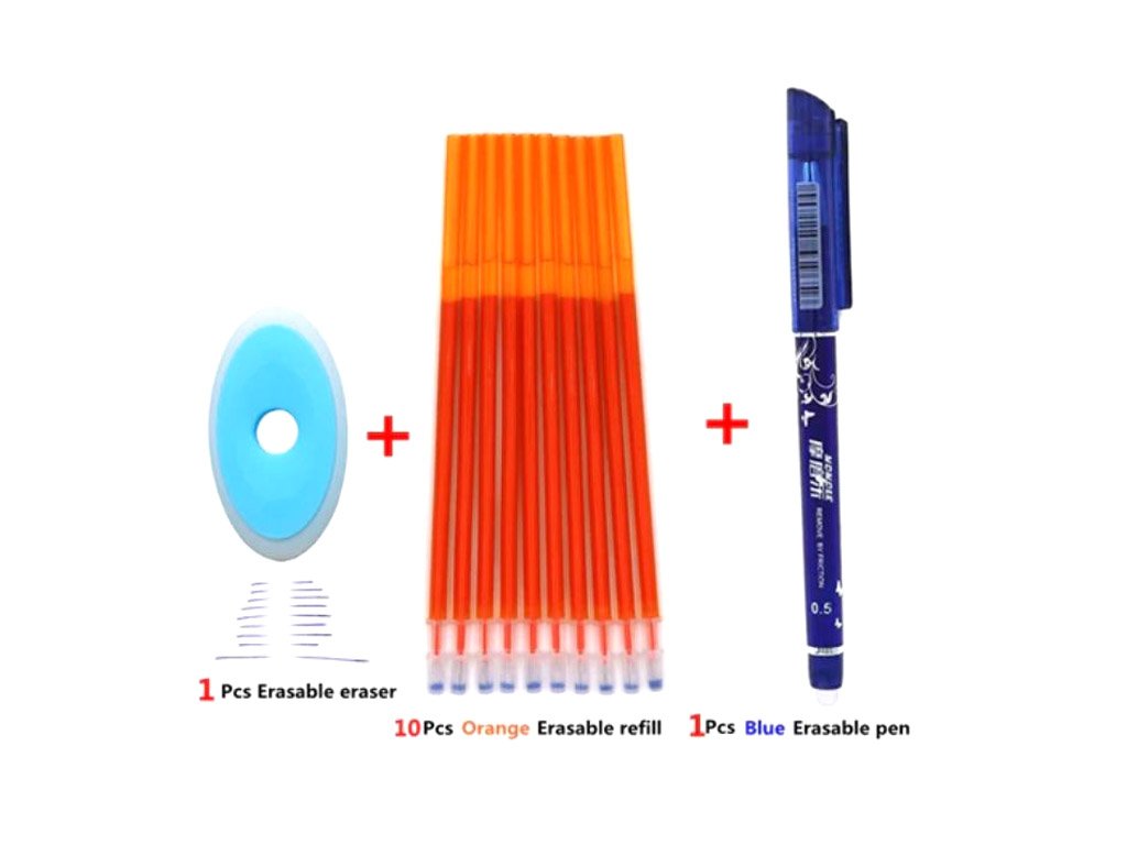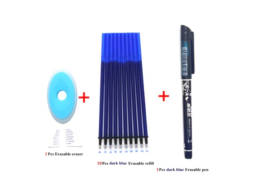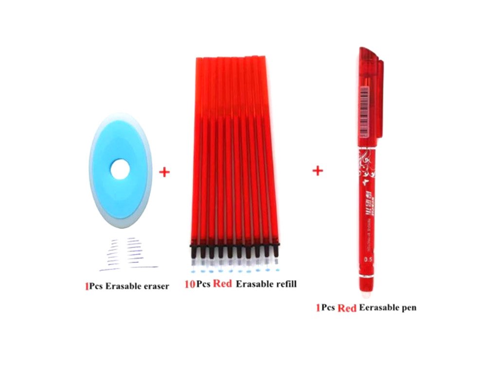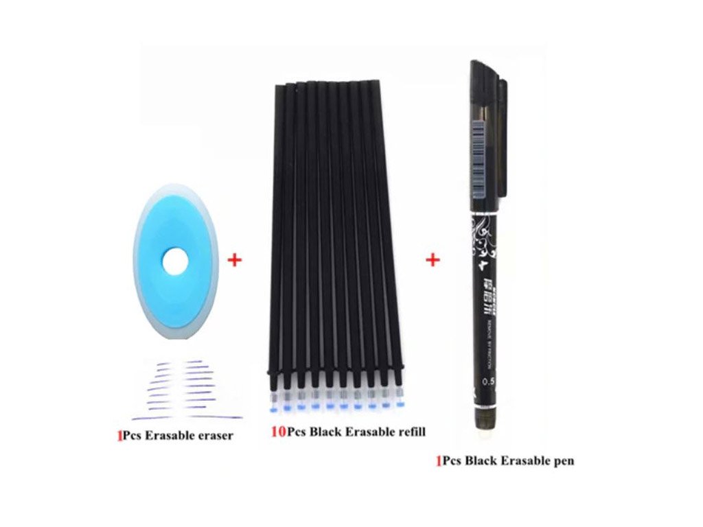 Bolígrafo con tinta especial y goma: el texto escrito se puede borrar y reescribir en el mismo lugar. Elija entre diferentes colores de tinta y bolígrafos.