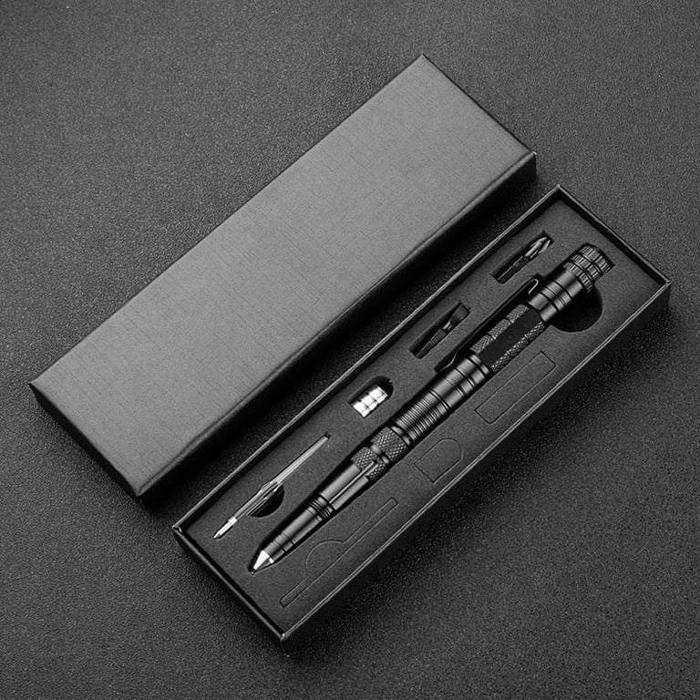Bolígrafo táctico multifuncional con linterna.