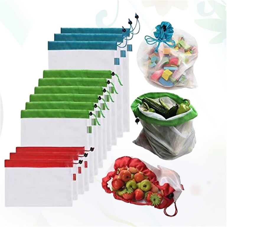 Bolsas ecológicas multifuncionales que puedes usar una y otra vez. Malla transpirable, lavable y reutilizable para alimentos y almacenamiento. Cuerda para cerrar. Almacenamiento transparente para artículos de viaje y casi todos los objetos del hogar. Ideal para juguetes, frutas, monedas, medicamentos, cables, cosméticos, accesorios y mucho más. Úsalas al hacer la compra, acampar, pescar, cosechar en el jardín, en la playa, de viaje, etc.