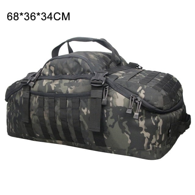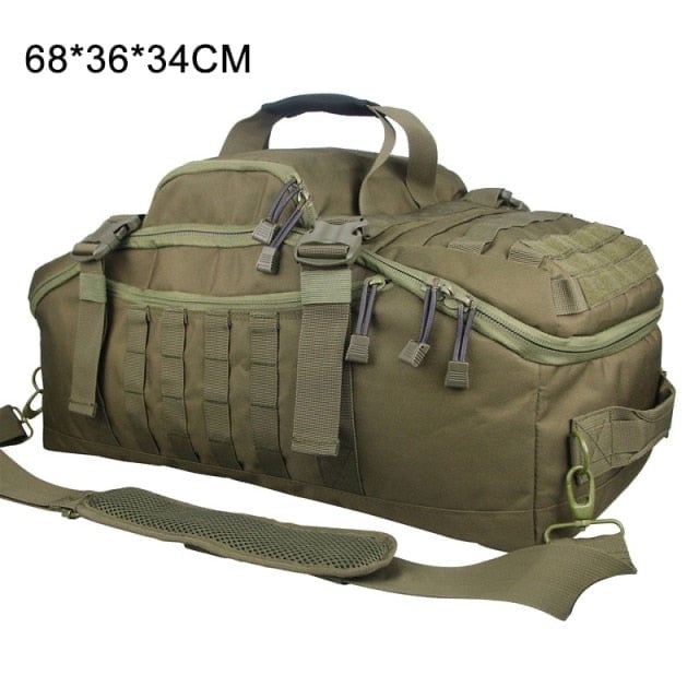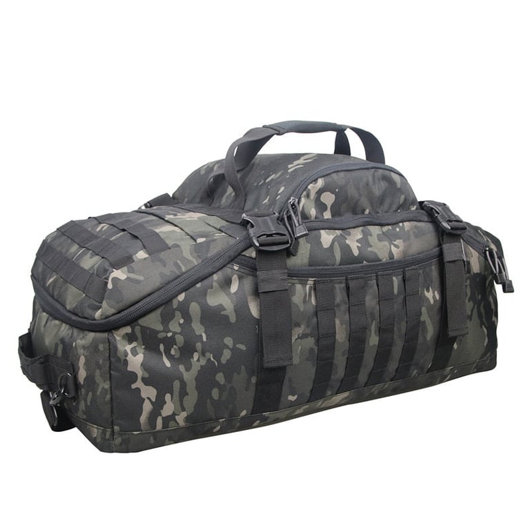 Bolsa de viaje de 80 l en colores militares, que se puede llevar como mochila.