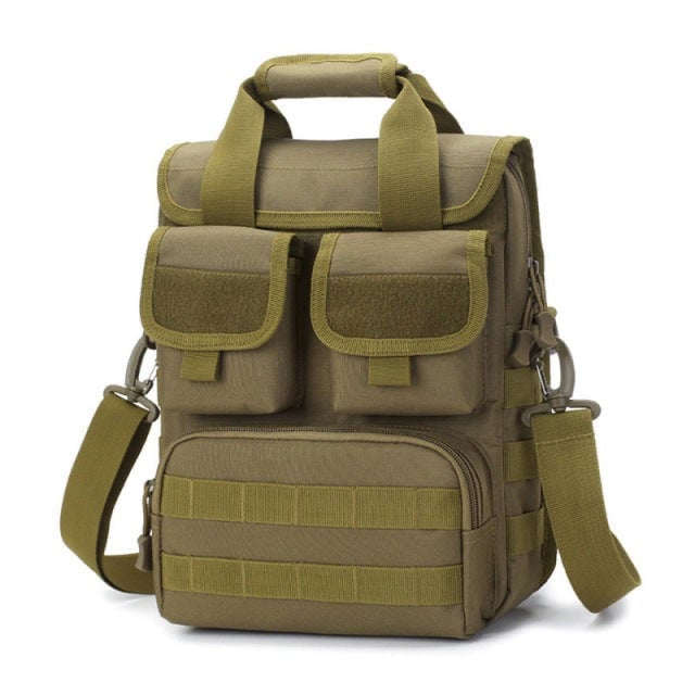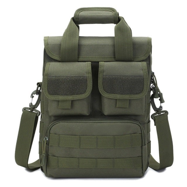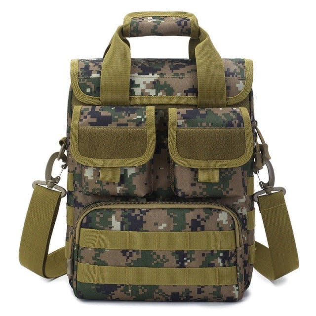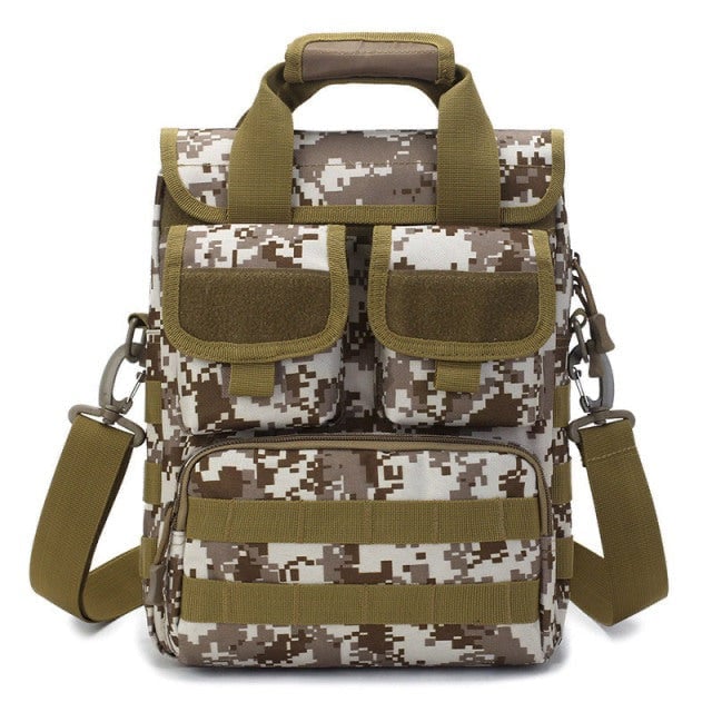 Bolsa militar compacta de hombro en color camuflaje.