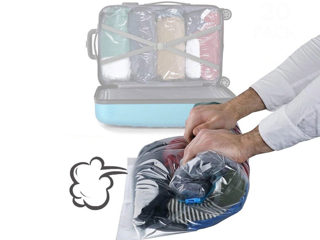 Enrollando, expulsarás el aire de la bolsa cerrada.