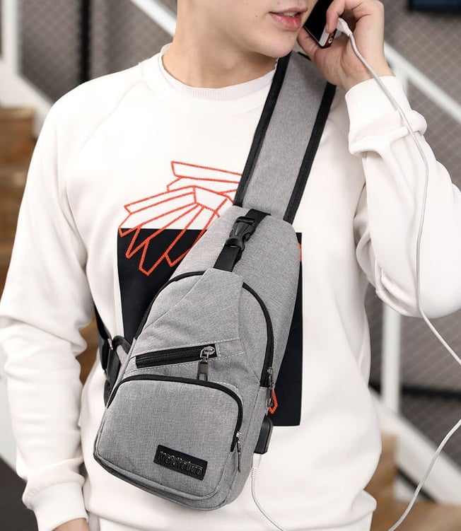 Bolso de hombre cruzado con puerto USB - 3 colores