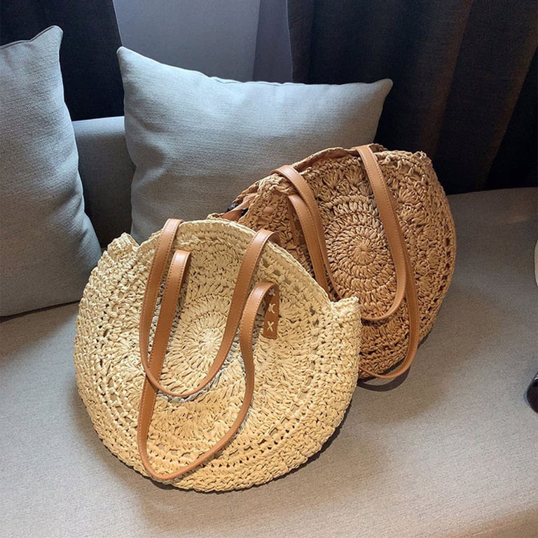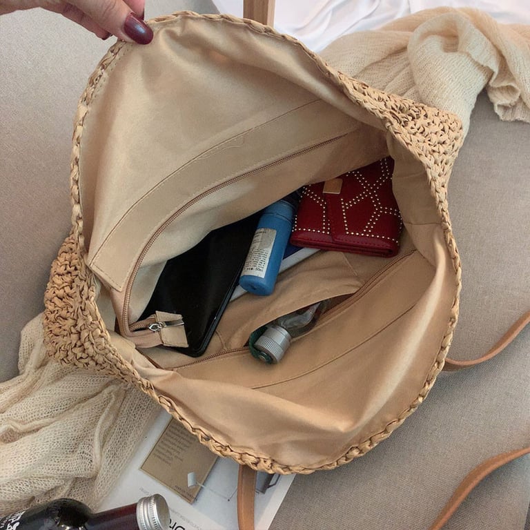 Bolso de paja de moda para mujer. Bolsillo interior con cremallera.
