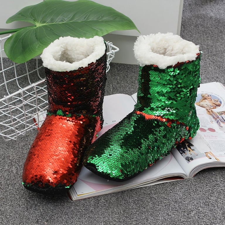 Botas de casa para mujer con lentejuelas Velenoisa - verdes