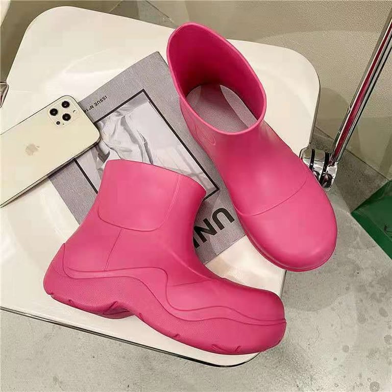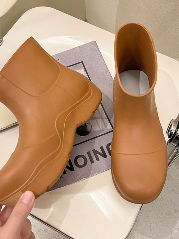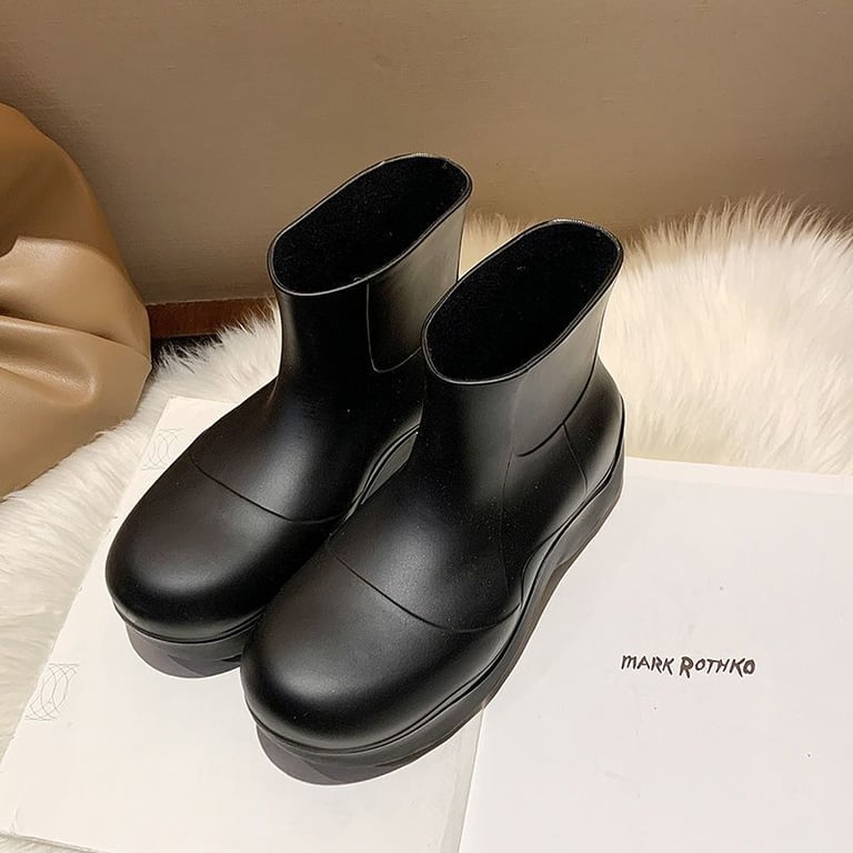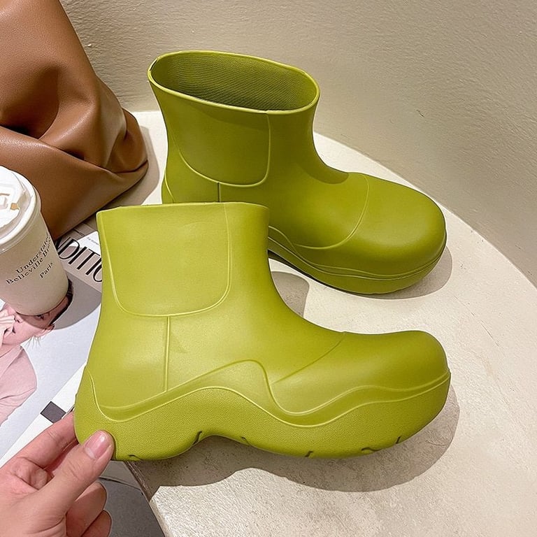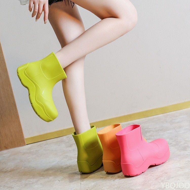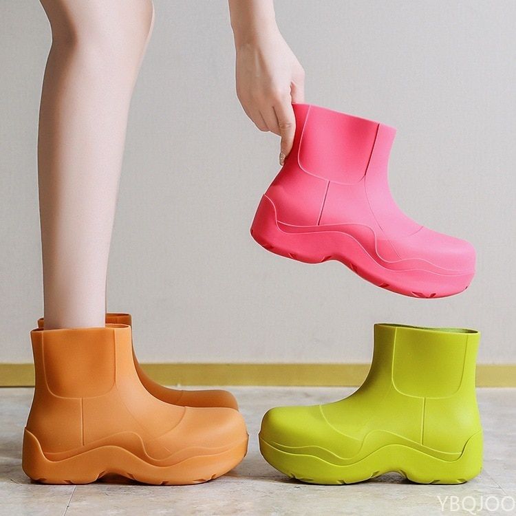 Botas de goma modernas con tobillo y suela alta.