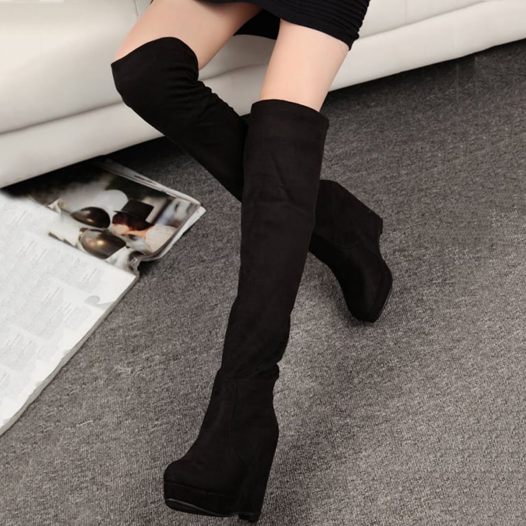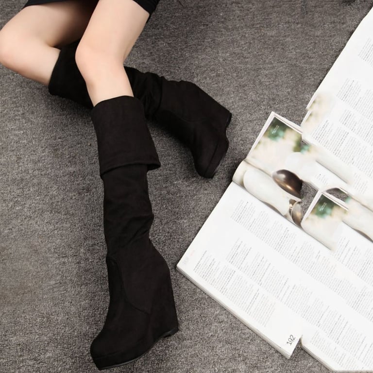 Botas de invierno altas y acolchadas para mujer en negro con tacón.