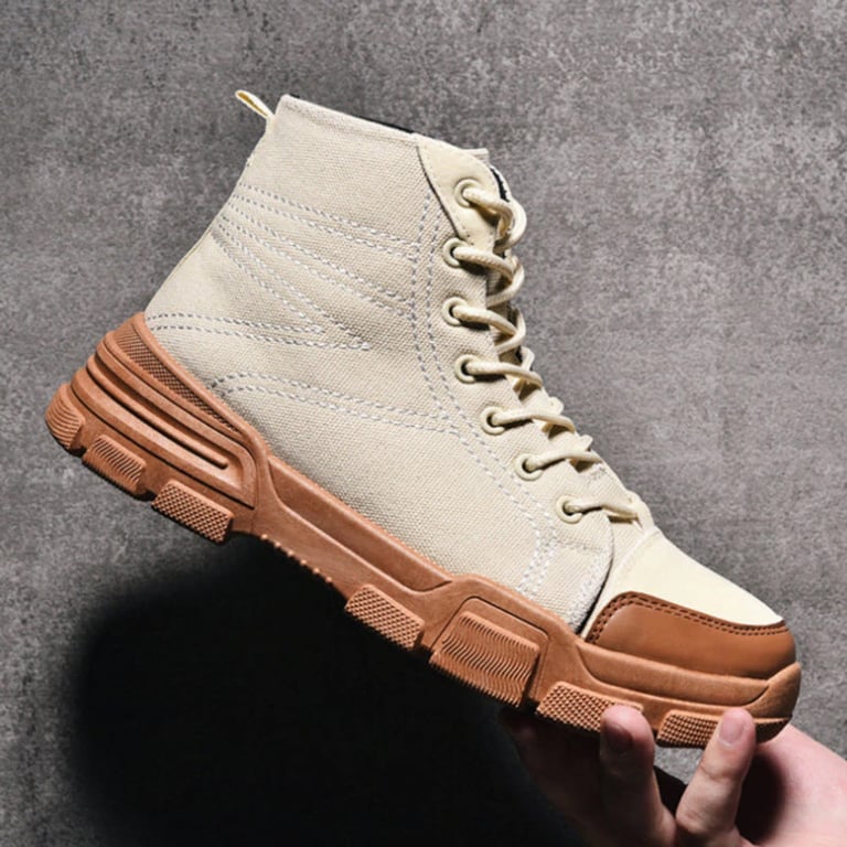 Zapatos de hombre elegantes de lona con suela de goma, que tiene ranuras especiales para una mejor caminata en la nieve, son el compañero ideal para el invierno. La plataforma más alta proporciona flexibilidad al pie y amortigua los impactos al caminar. Son maravillosamente transpirables, pero no son impermeables.