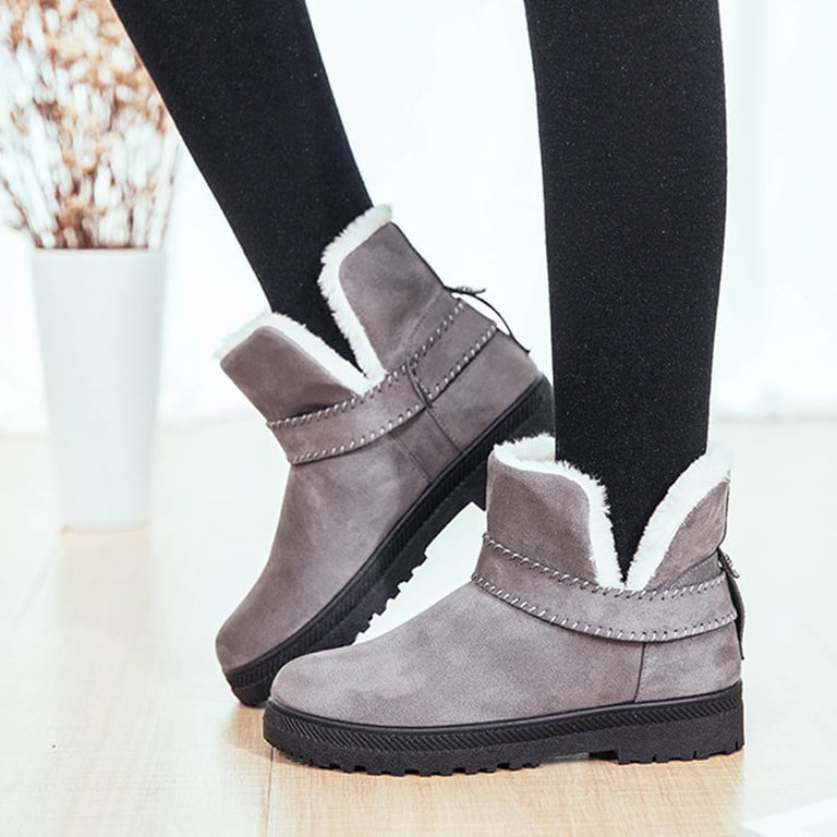 Botas de invierno para mujer sin tacón. Las botas tienen una suela de goma con un patrón estriado, son antideslizantes. Por dentro están forradas con pelaje. Disponibles en cuatro colores.
