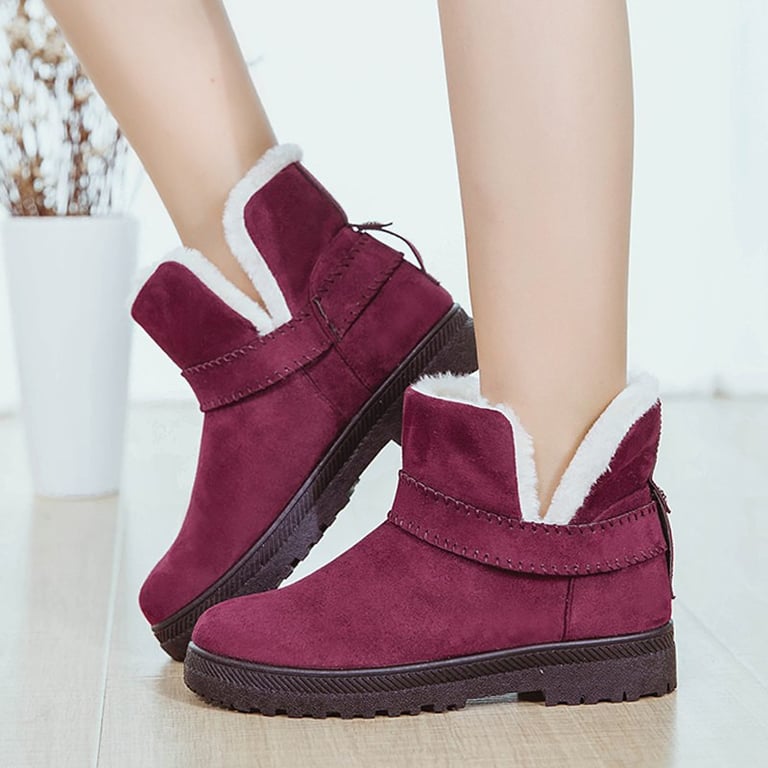 Botas de invierno para mujer sin tacón. Las botas tienen una suela de goma con un patrón estriado, son antideslizantes. Por dentro están forradas con pelaje. Disponibles en cuatro colores.
