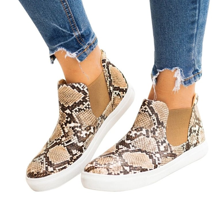 Botas de tobillo para mujer con aspecto de cuero. Suela de goma plana. Sin cordones. Disponibles en varias opciones de color.