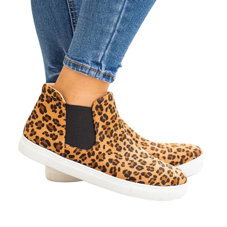 Botas de tobillo para mujer con apariencia de cuero. Suela de goma plana. Sin cordones. Disponibles en varias opciones de color.