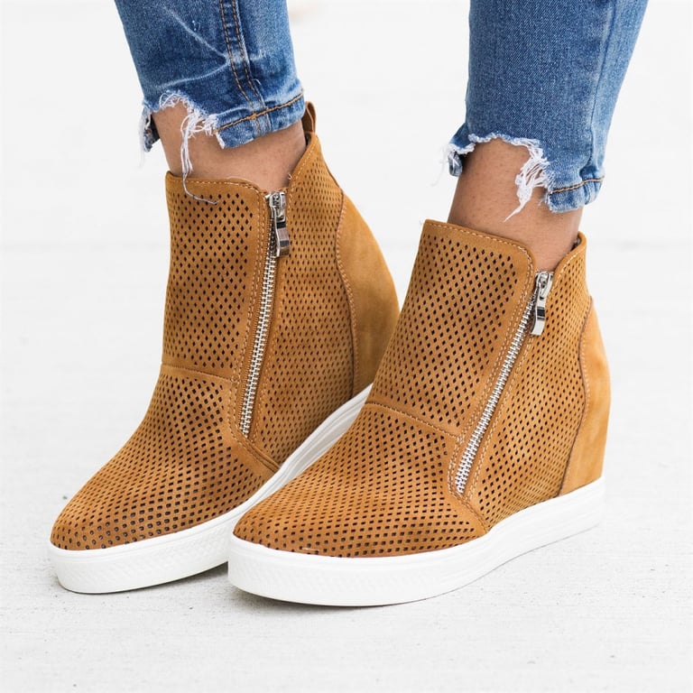 Botas de tobillo para mujer con aspecto de cuero. Suela de goma con plataforma alta. Cierre con cremallera. Disponibles en varias opciones de color.