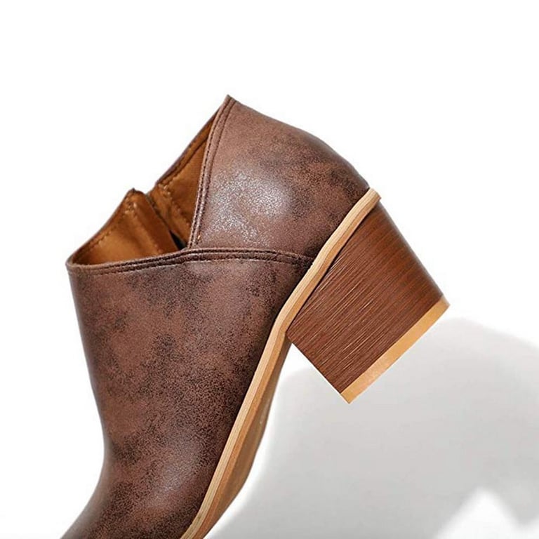 Botas de tobillo para mujer con corte y cierre de cremallera en el lado interior. Las botas tienen un tacón ancho y estable de 5 cm de altura. Apariencia de cuero. Ideales para primavera/otoño. Disponibles en tres variantes de color.
