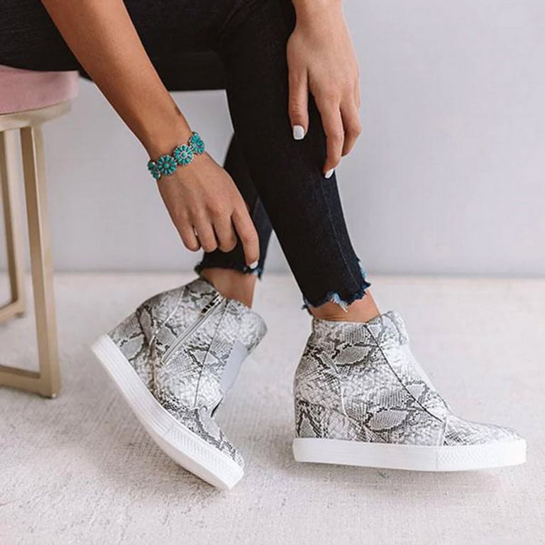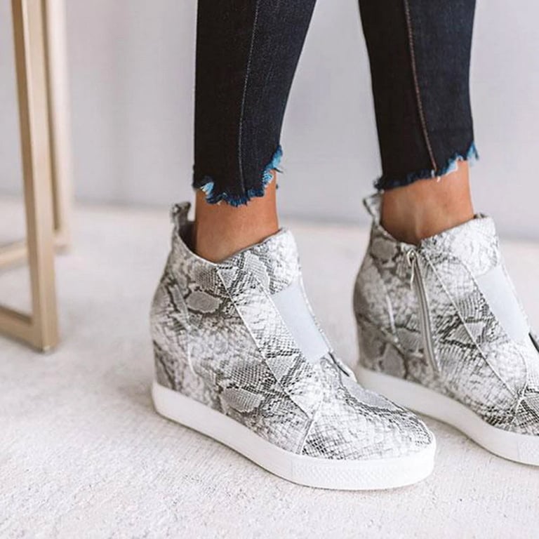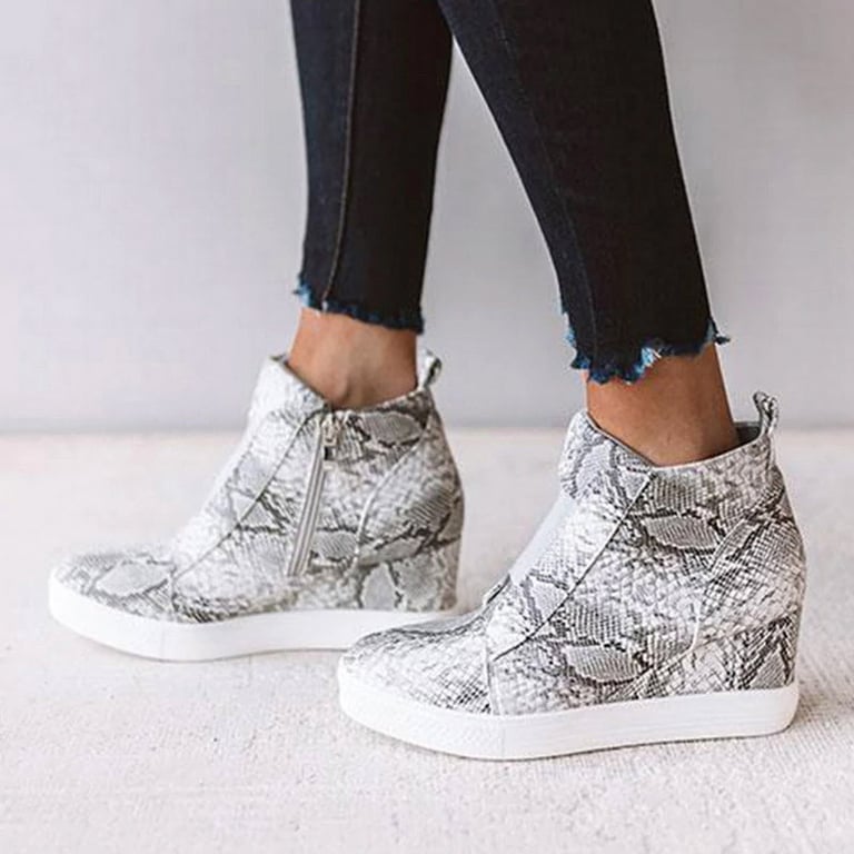 Botas de mujer de tobillo con plataforma alta. Las botas tienen suela de goma y cierre de cremallera en el lado interior. Cuero sintético. Disponible en varias opciones de color.