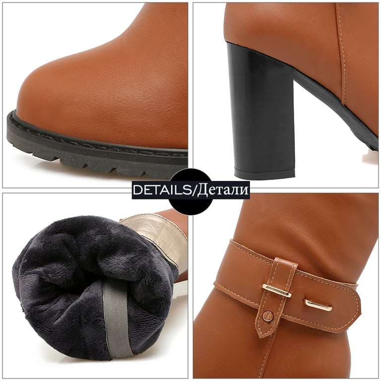 Estas botas con tacón cuadrado serán tus favoritas. Gracias a su tacón, son muy cómodas y caminar con ellas no te causará ningún dolor. El tacón mide 9,5 cm.