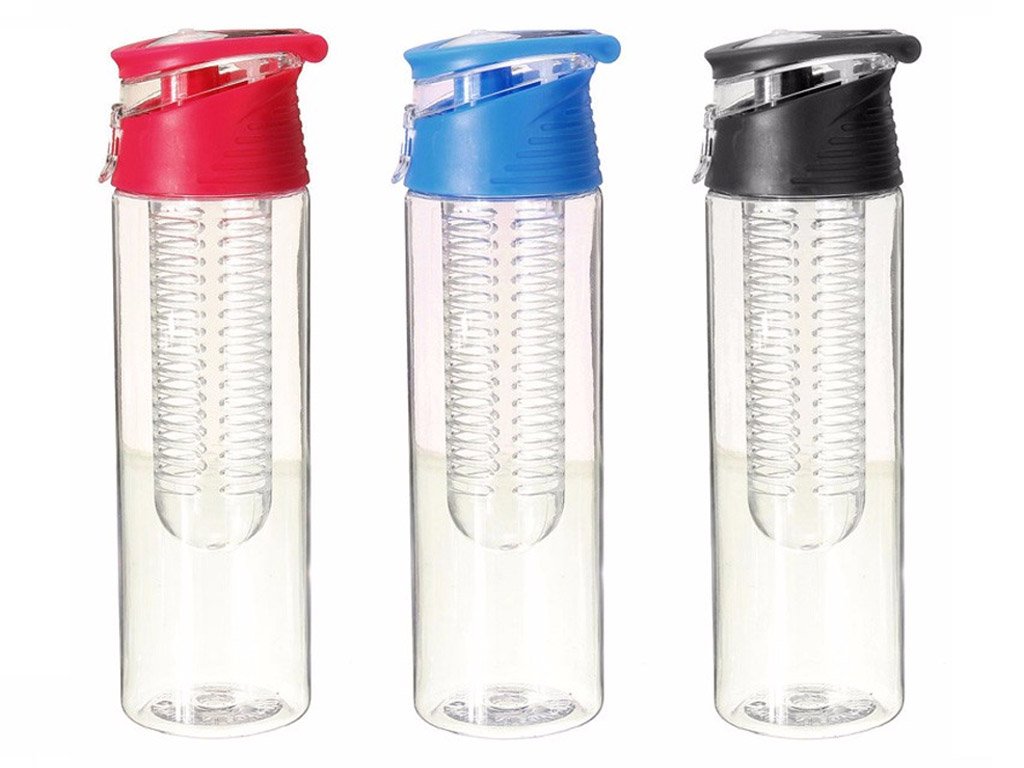 ¡Disfruta de una refrescante llena de fruta! La botella de 700 ml viene con un filtro, donde puedes mezclar tu combinación de frutas favorita. El agua común se transformará una y otra vez en una deliciosa bebida llena de vitaminas y sabor afrutado durante el deporte o un paseo. Opción de elegir entre 4 colores. Capacidad: 700 ml