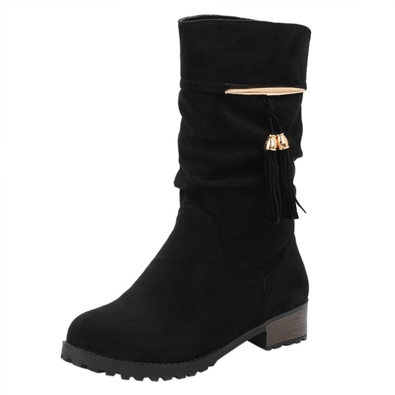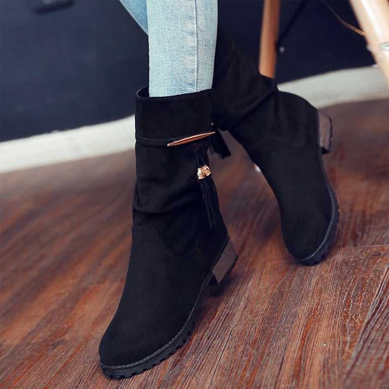 Botines modernos para mujer con un ligero tacón que llegan hasta la mitad de la pantorrilla. Son muy cómodos en otoño e invierno.