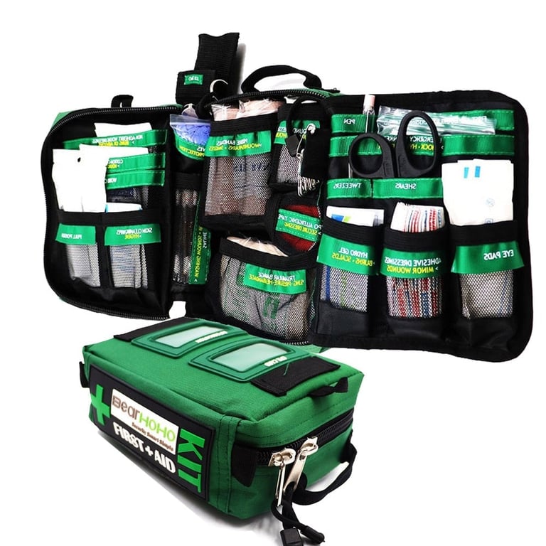 Botiquín de primeros auxilios compacto, equipado y resistente al agua.