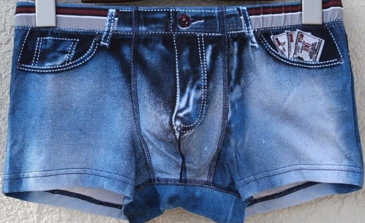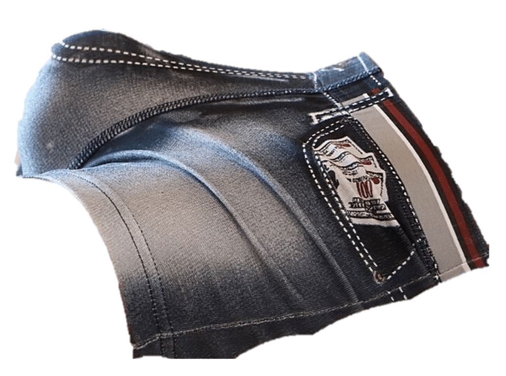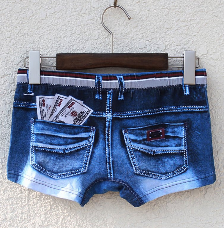 ¡Sé elegante con estos boxers para hombre al estilo de pantalones cortos de mezclilla con cinturón y billetes de 100 dólares en los bolsillos!