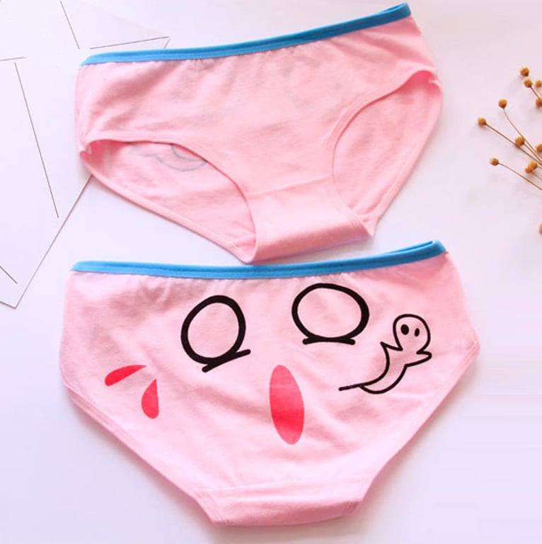 Las braguitas son simples por delante y tienen una carita linda con ojitos por detrás.