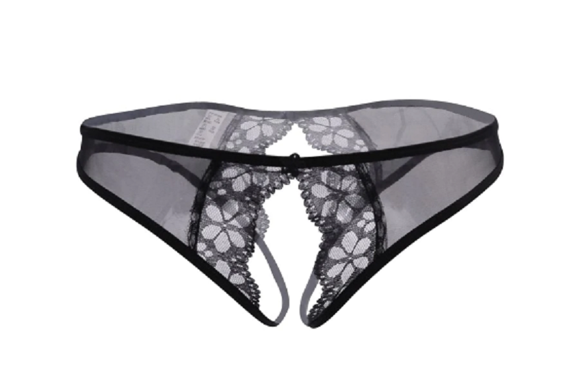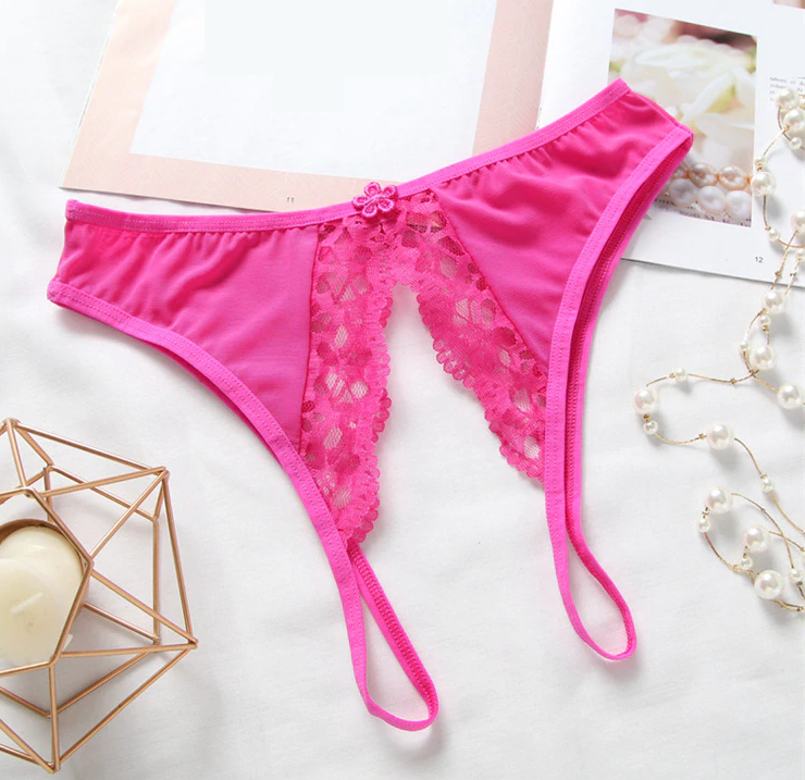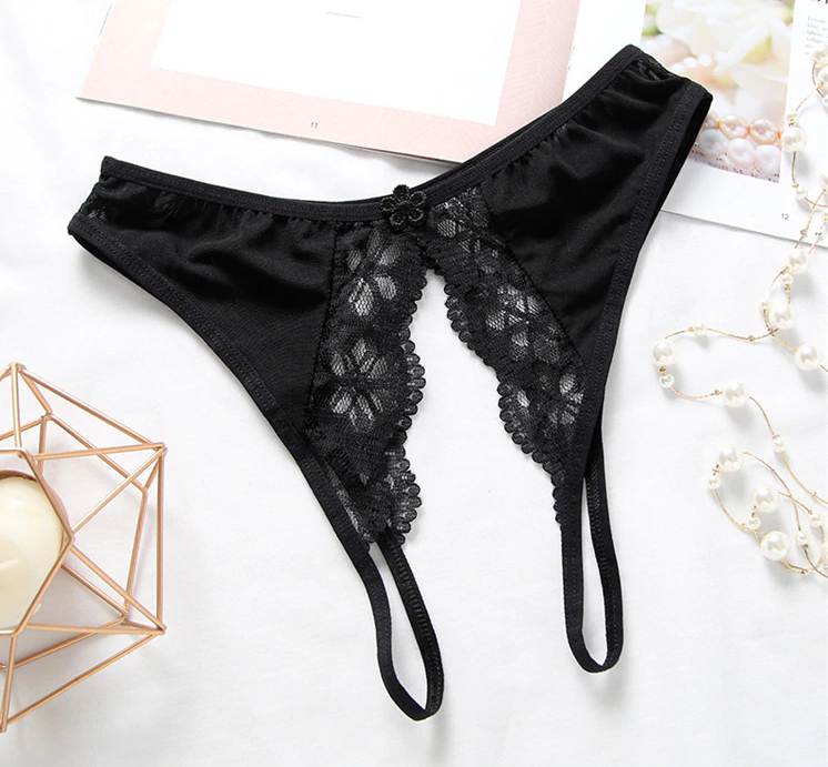 Las bragas son de encaje y tienen una abertura refinada en el medio.