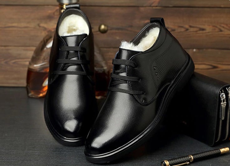 BritGent™ Botas de invierno de cuero para hombre con forro de piel.