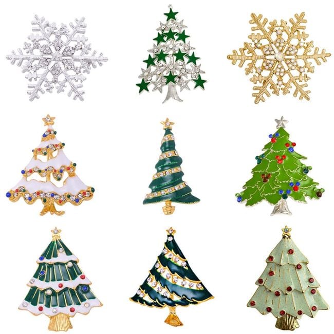 Un broche decorativo en forma de árbol de Navidad o copo de nieve se verá genial en su suéter o abrigo.