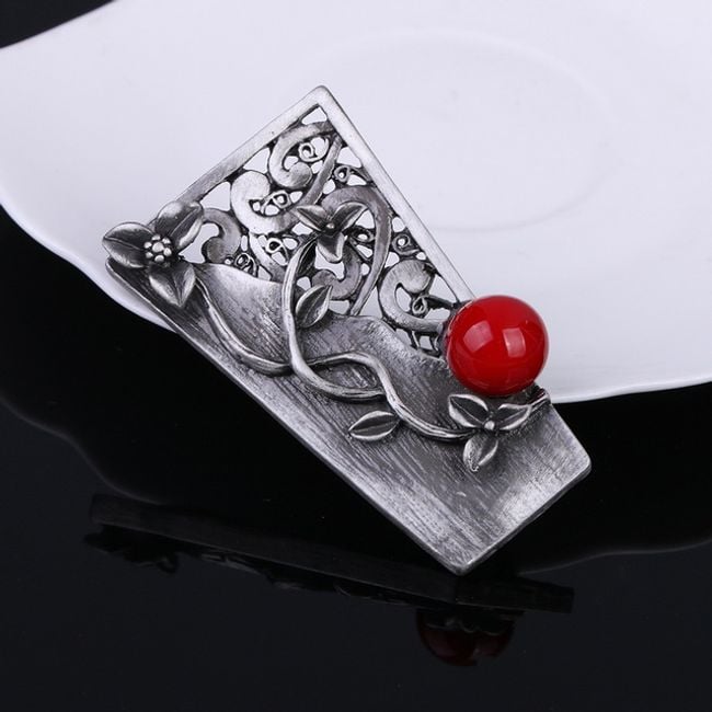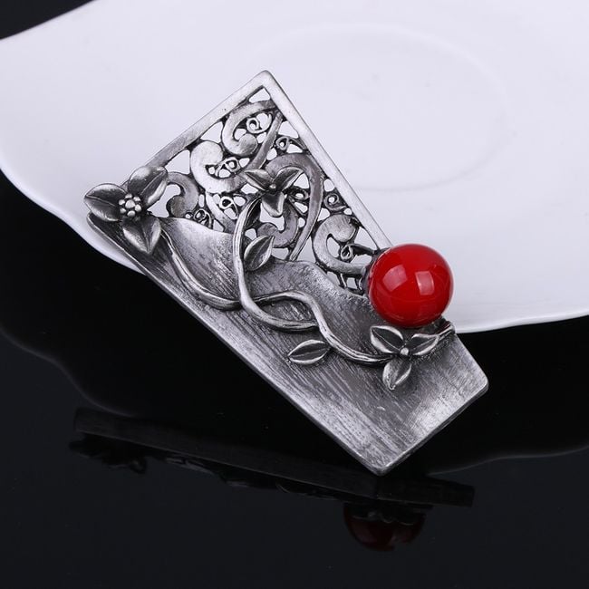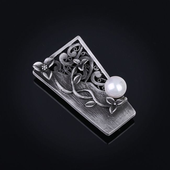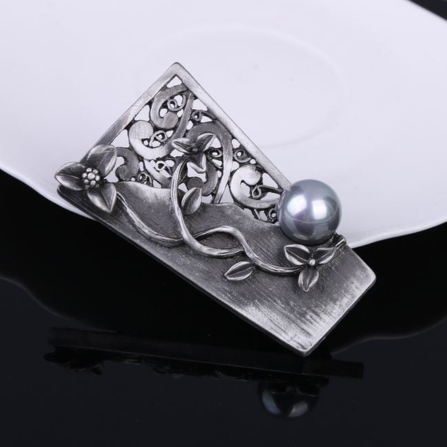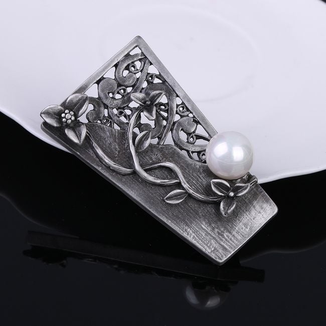 El broche decorado con una perla servirá como complemento para una blusa.