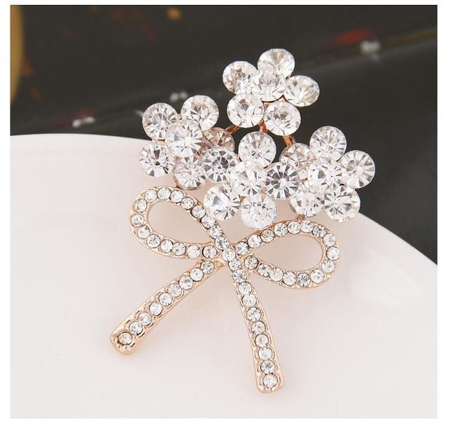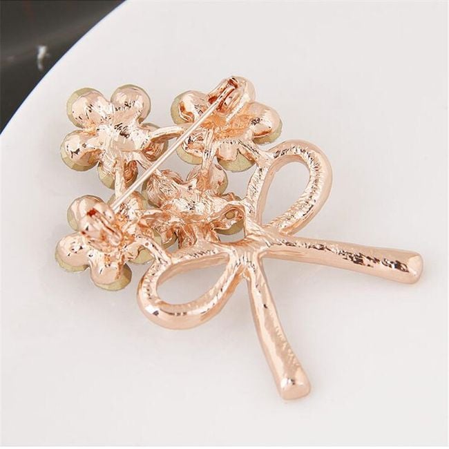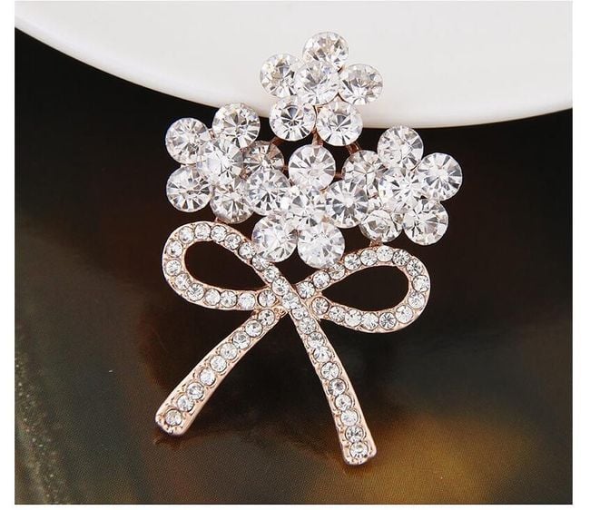 Un broche elegante con un diseño lujoso y piedras brillantes.