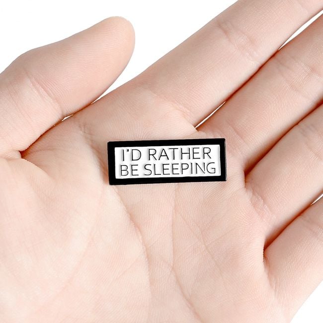 Broche con un lema divertido.