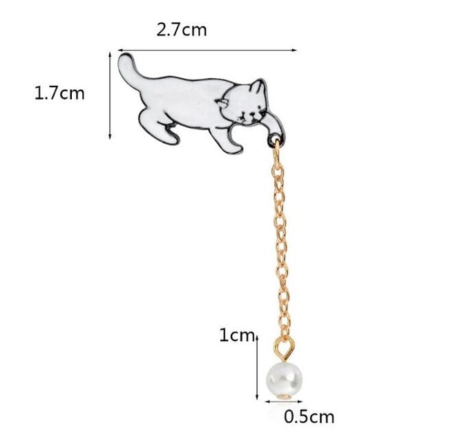 Broche de mujer en forma de gatito, jugando con un ovillo.