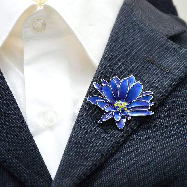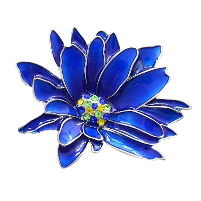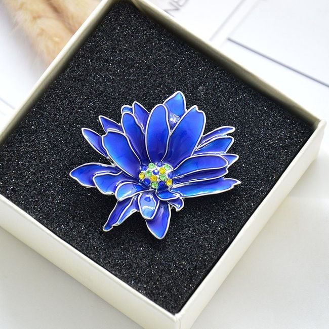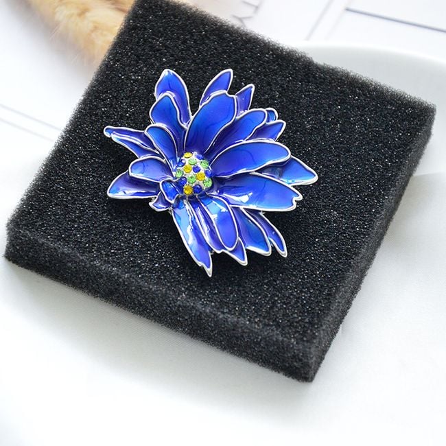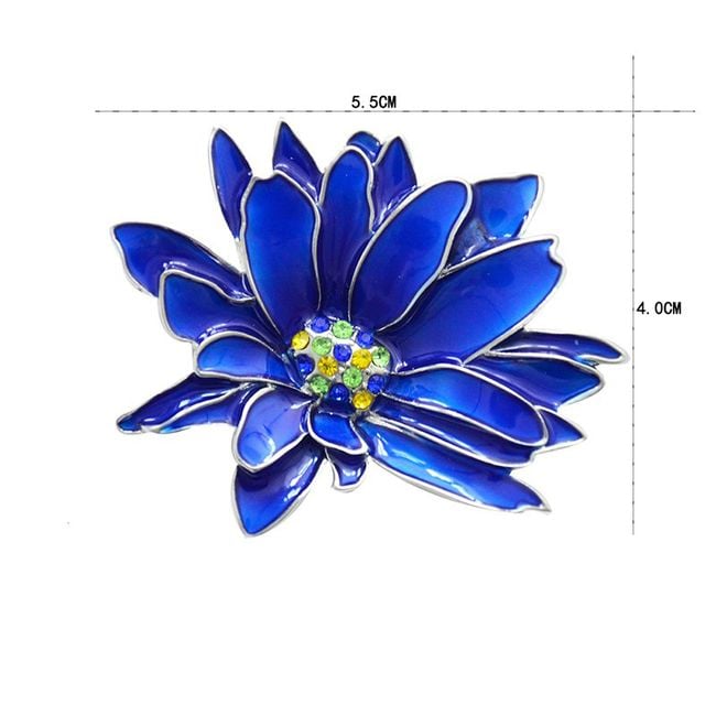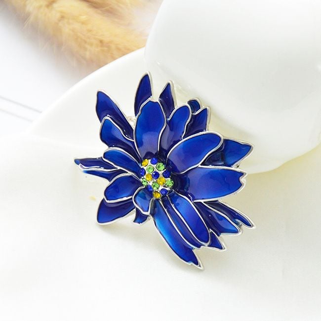 Broche de bisutería para mujer en forma de crisantemo azul.