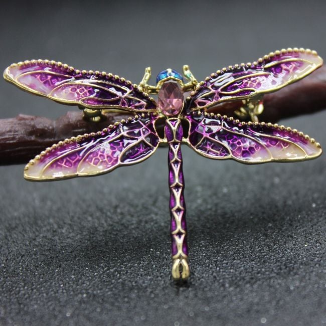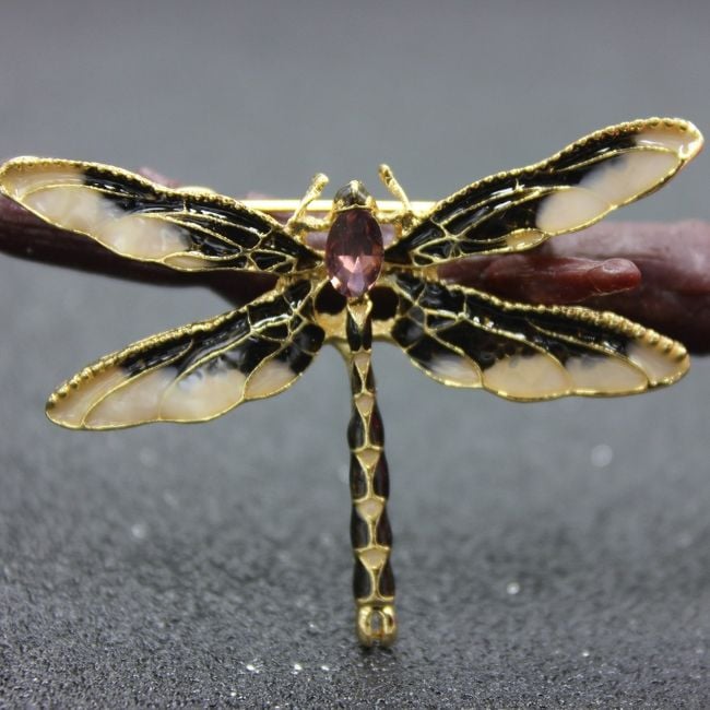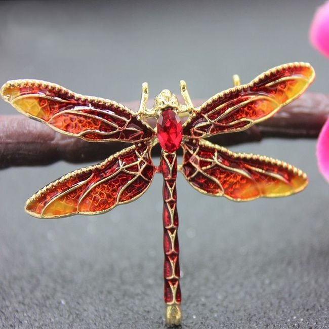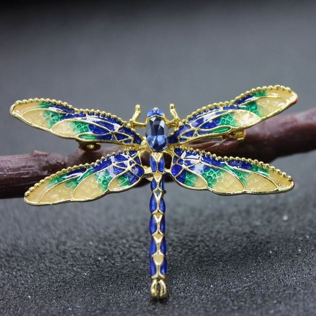 Broche de bisutería para damas en forma de hermosa libélula de colores.