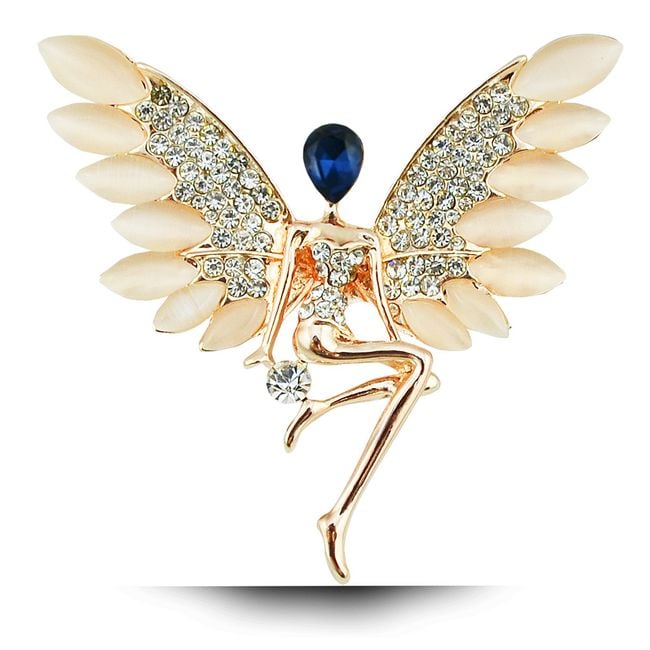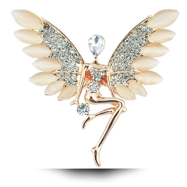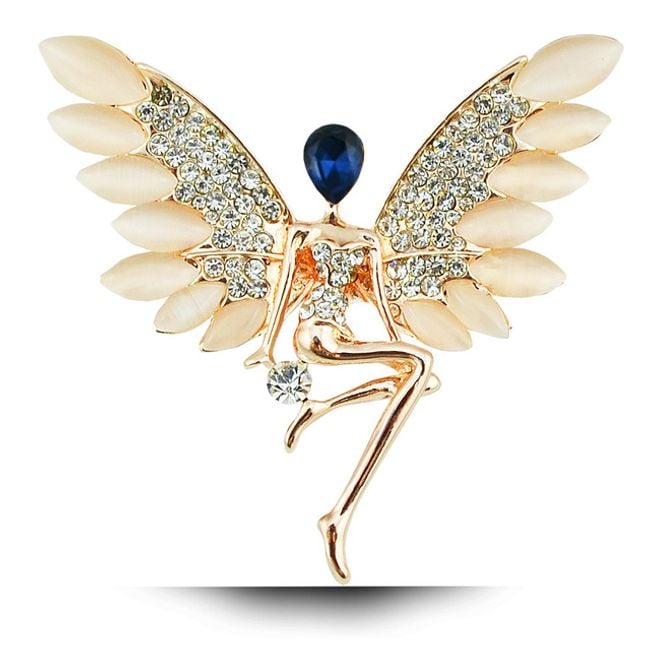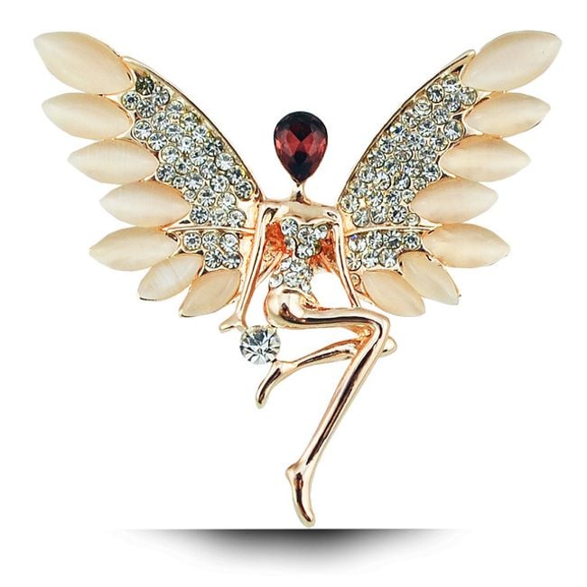 Un interesante broche en forma de mujer con alas adornará perfectamente tu chaqueta o abrigo.