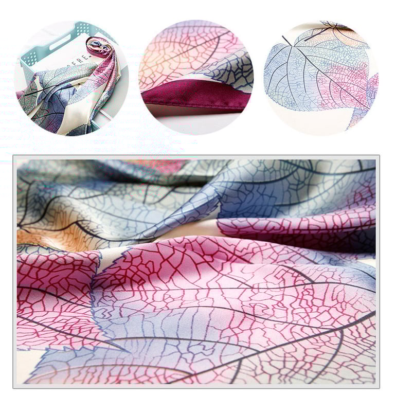 Hermosa bufanda de mujer, que es brillante y tiene un diseño de hojas de colores.