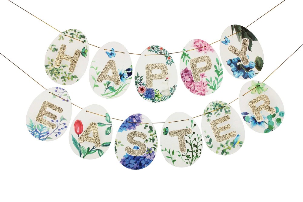 Esta guirnalda de Pascua con la inscripción Happy Easter decorará maravillosamente su hogar.