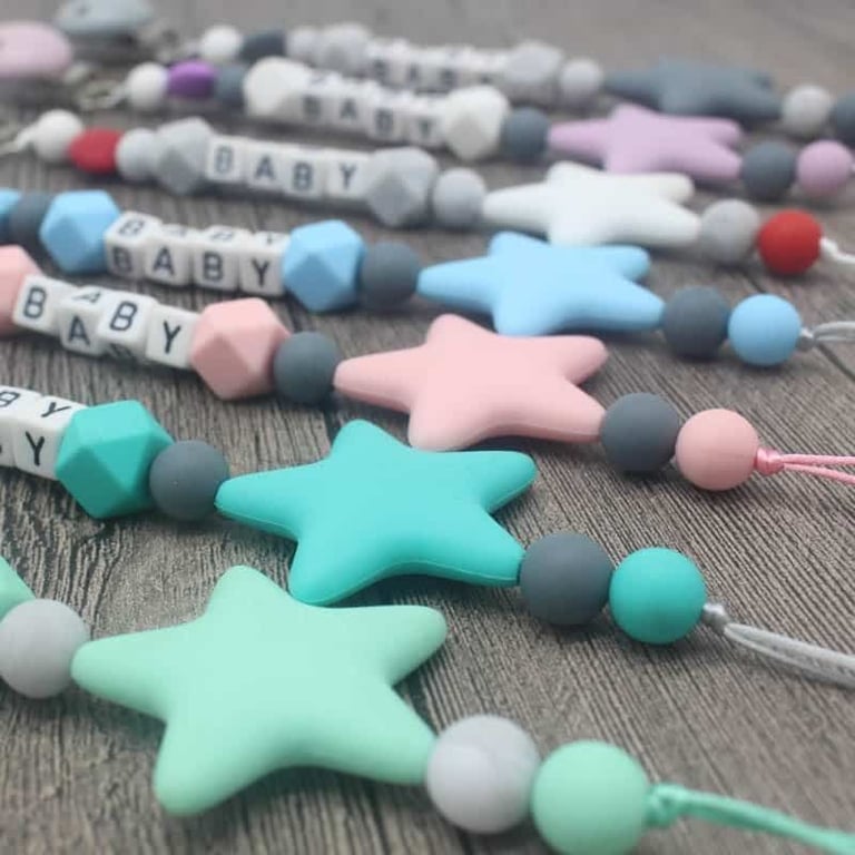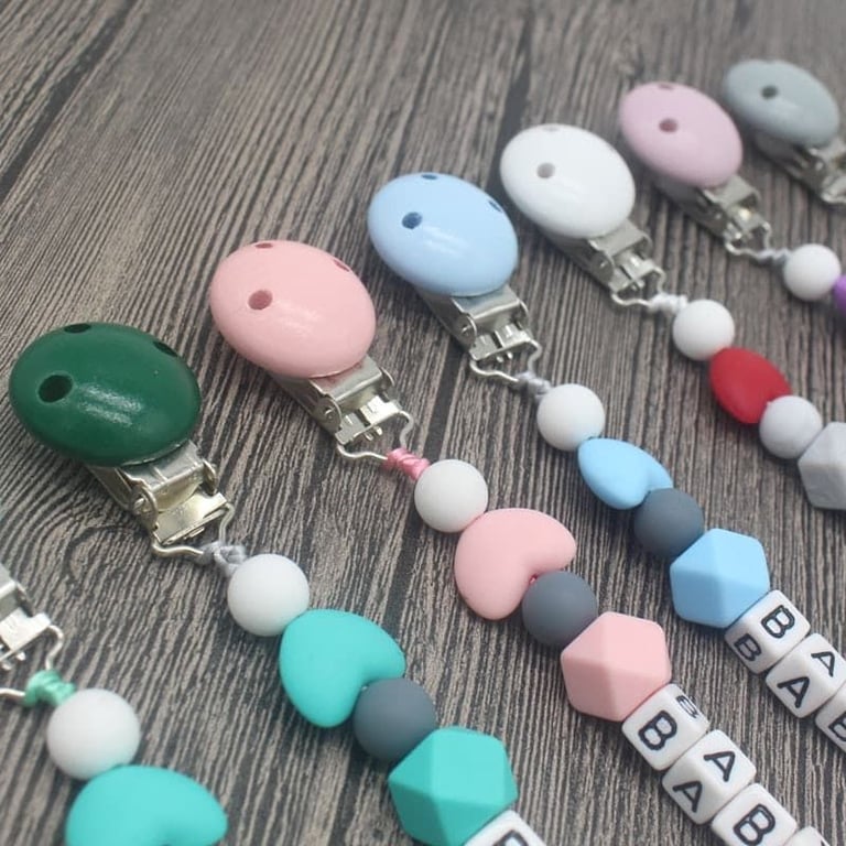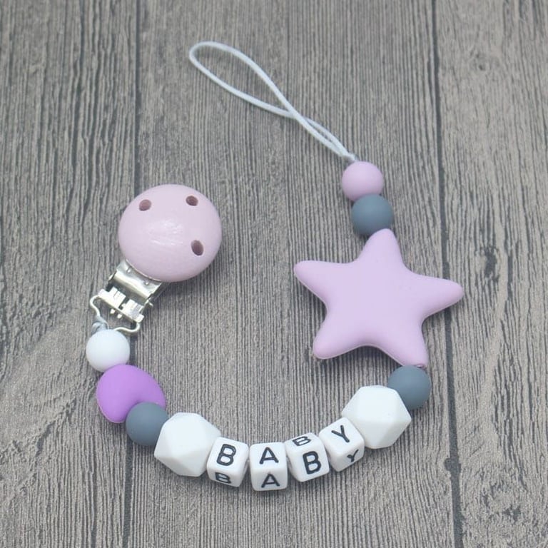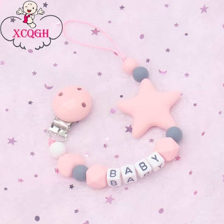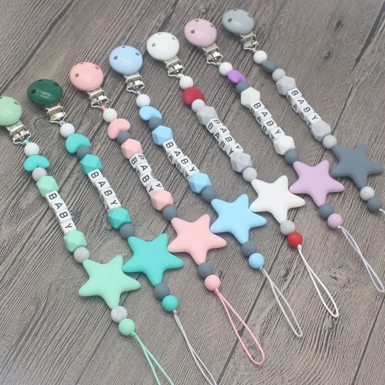 Cadenita de silicona para chupete con clip. Cadenita de silicona para chupete con clip