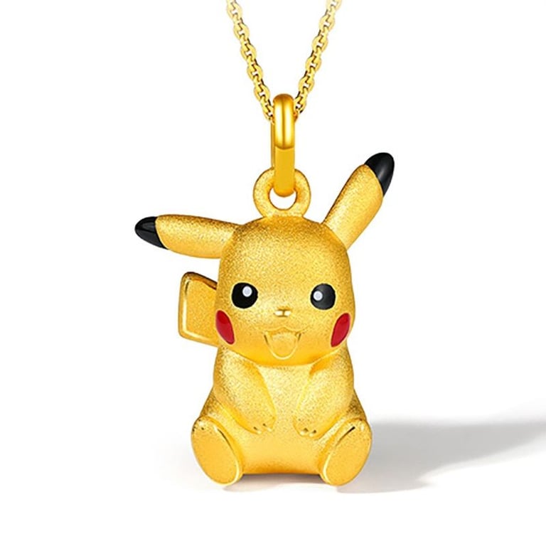 Collar dorado brillante con colgante de Pikachu