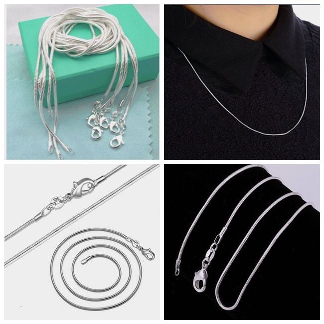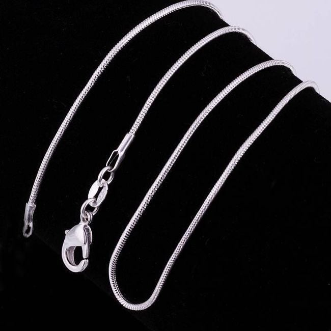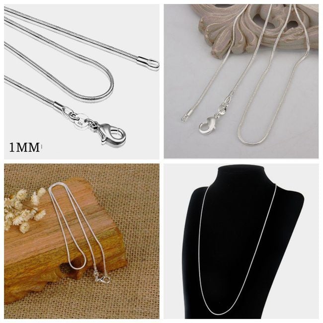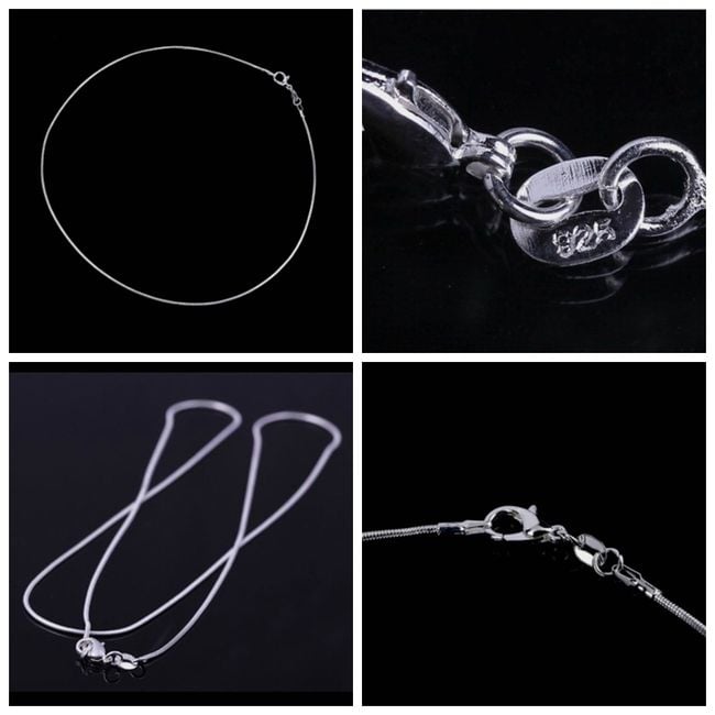 Cadena sencilla de color plateado con cierre clásico. Es adecuada para la mayoría de los colgantes. Ofrecemos en 5 tamaños.
